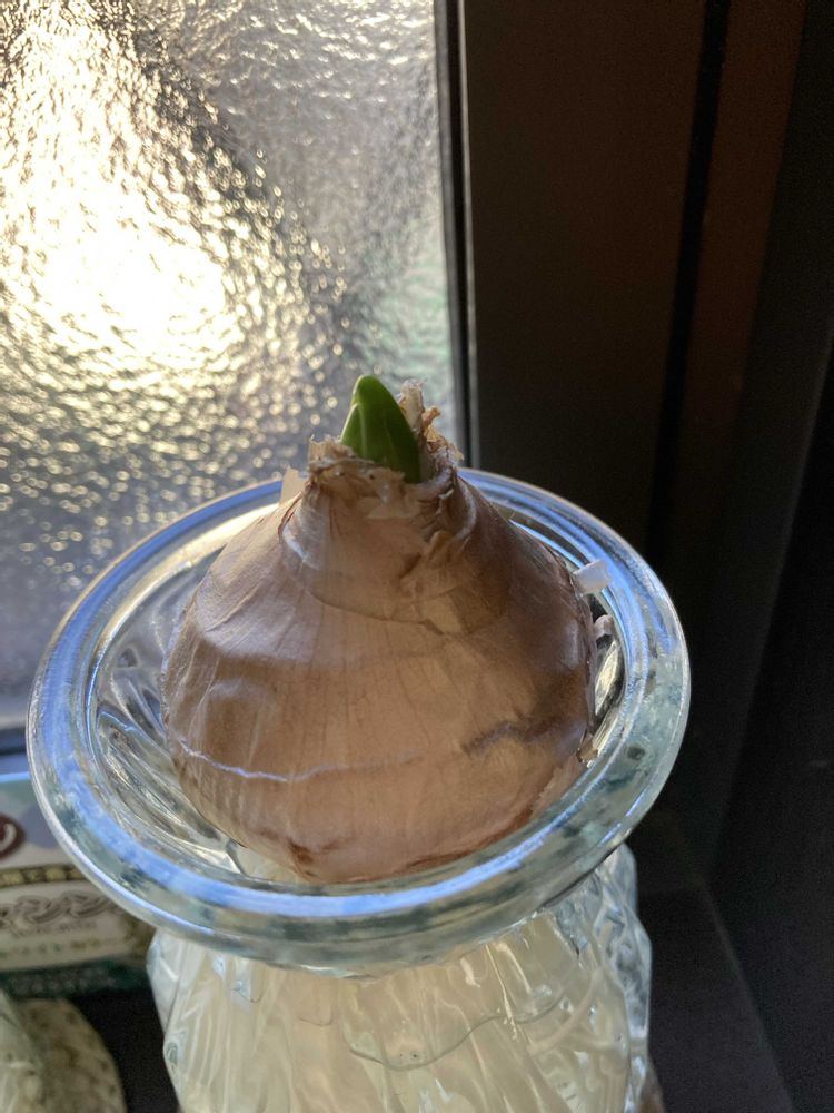 我が家のヒヤシンス🪻も、やっと根っ子出てきました。