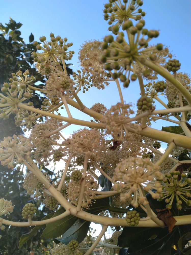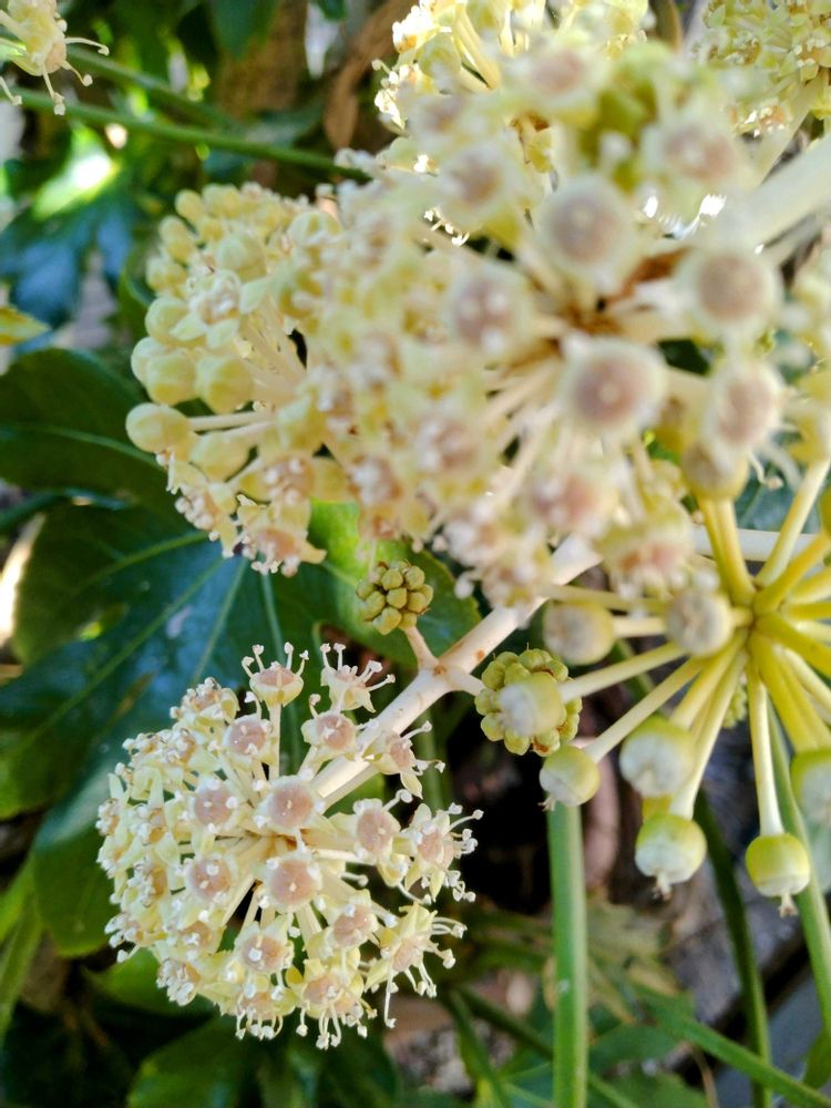 そんな中でもヤツデは元気に花を咲かせています✊
