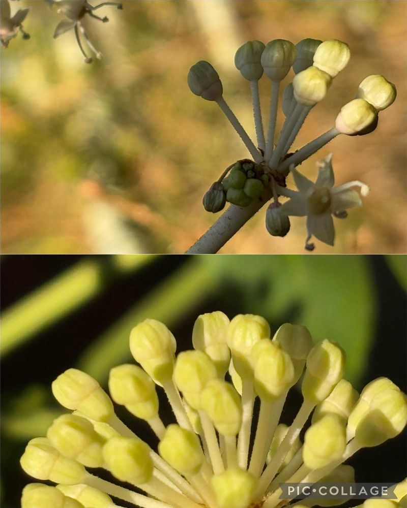 ゴメンナサイ🙏前投稿で、『ヤツデの蕾』と載せたけれど、間違いでしたので訂正いたします。あの坊主姿も花の状態なんだそうで📕