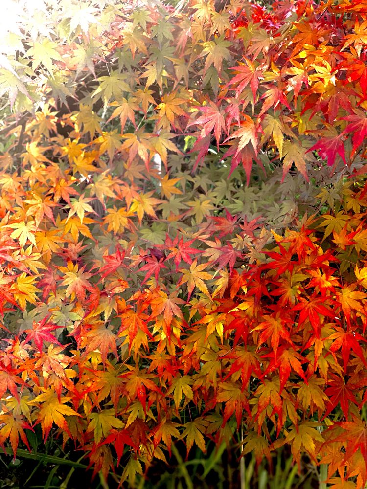 グラデーションも紅葉の楽しみ方のひとつですね。陽の光も引き立ててくれてます。