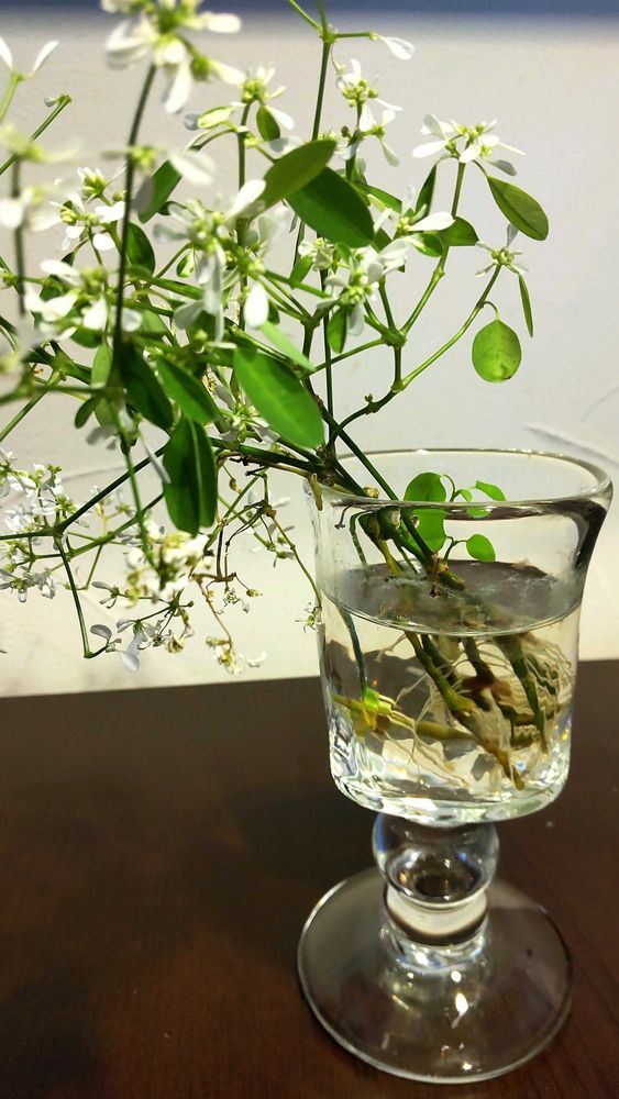 うまく発根するかな?お花はどうなるのかな?🤔と思いながら試してみたのですが、ちゃんと根が出ています!そしてお花も半分くらい残っています😆