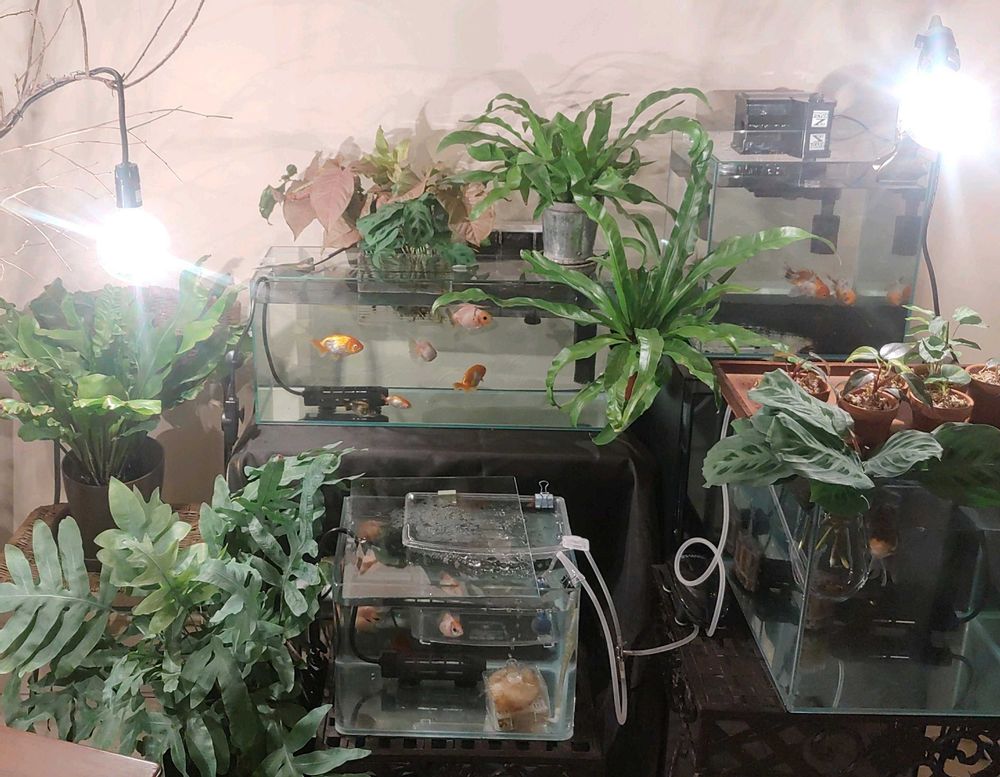 水槽と電球のあたりが温かいので、いっぱい持ち込みました。