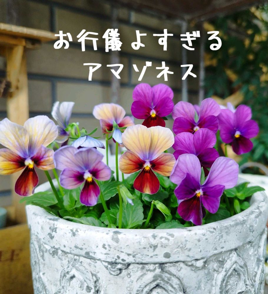 ヴィオラの名前にとうとうアマゾネス!😹ヴィオラは品種が多くなってきて、名前つけるのも大変だね〜