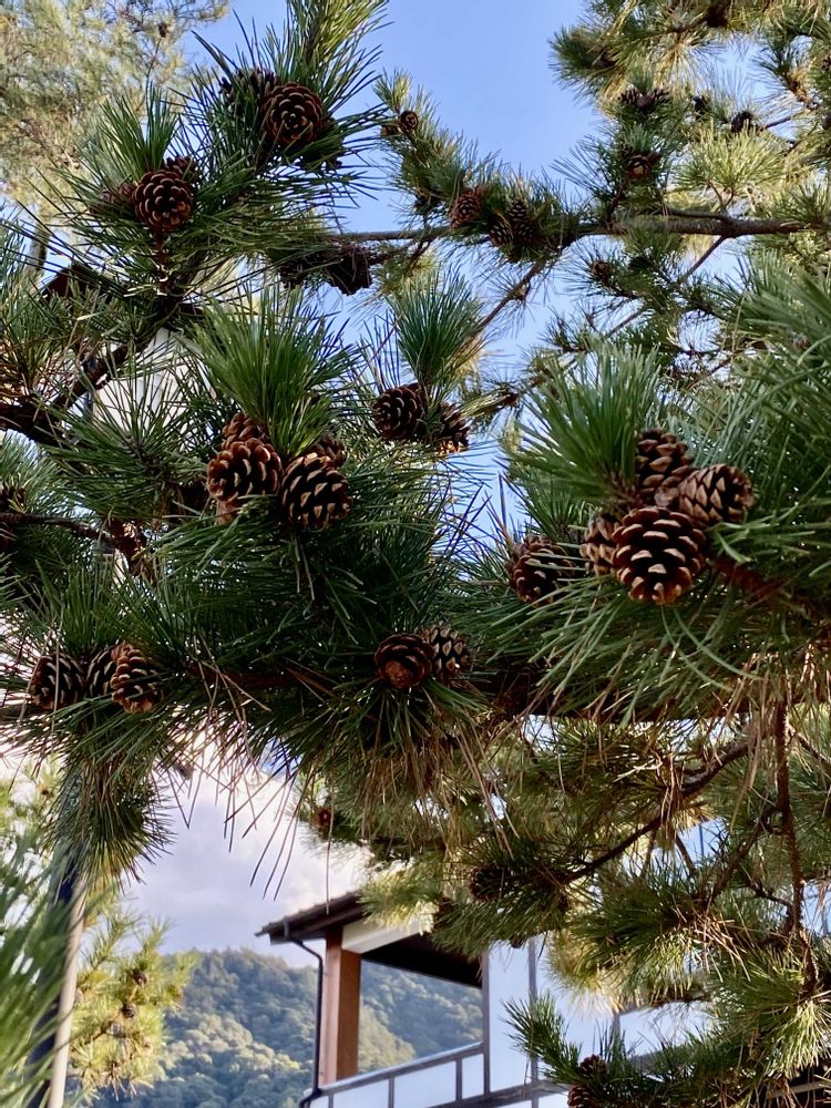 松の木に沢山の松ぼっくりの実が付いていて、まるで天然のchristmasリースだね🎄と話していました。