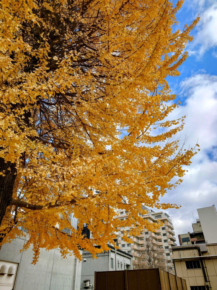 今日の午前、市内を散歩途中に見かけたイチョウ。