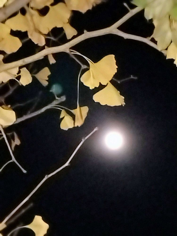 今年最後の満月🌕をありがとうございます(๑^ ^๑)/銀杏の黄色とのコラボレーション素敵です。