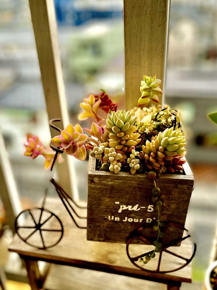 このチャリの荷台キューってしまった韓国苗なんてモリっと詰めてセダム散らしたらめちゃくちゃ女の子が食い付きそうね😁