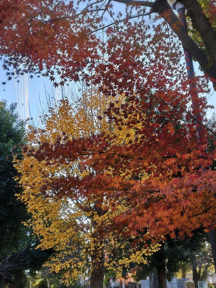 お散歩中にてイチョウの葉ともみじの落ち葉が可愛いなと思ってパシャリ! Σpω・´)