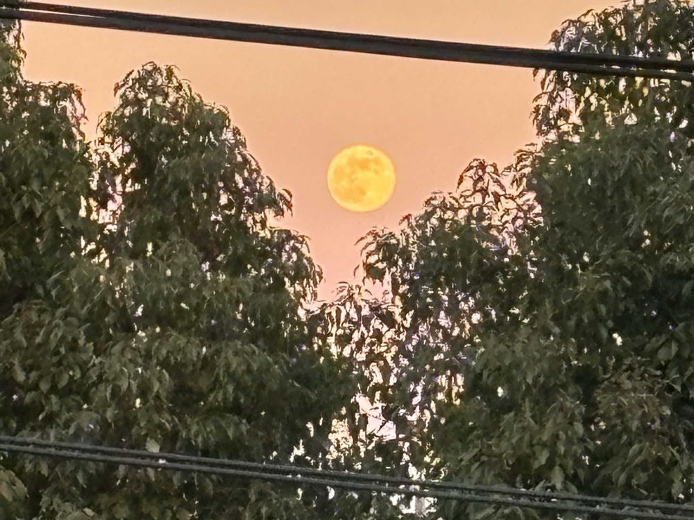 ピンク色の空から、真ん丸お月様🌕上ってきた