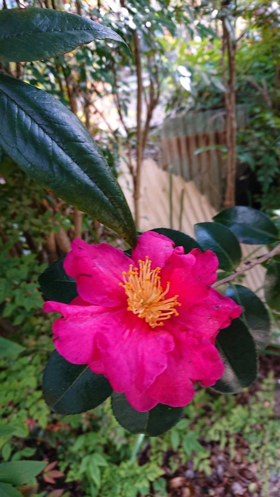 ①庭の山茶花!娘が生まれて一歳の時、記念として植えたシンボルツリーです🥰
