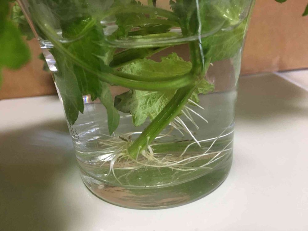 青じそが茎のまま売ってたので水に挿してたらあっという間に根が。