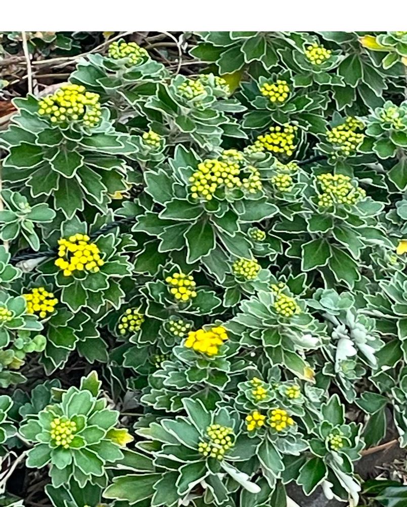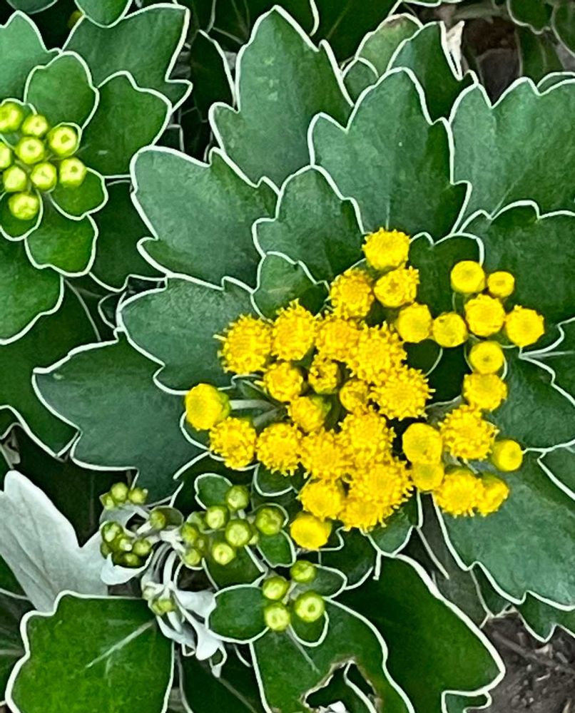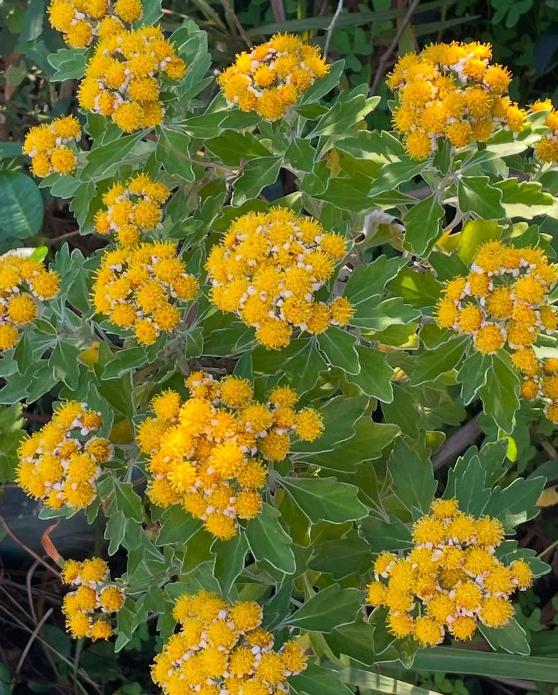 初めまして、磯菊の群衆見事ですね、ビタミンカラーの花とみどりの葉の縁取り癒されますね。