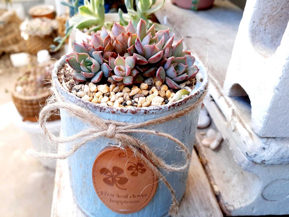 可愛いリメ缶にピンクステラの群生ちゃん植えました〜ꯁꯧ
