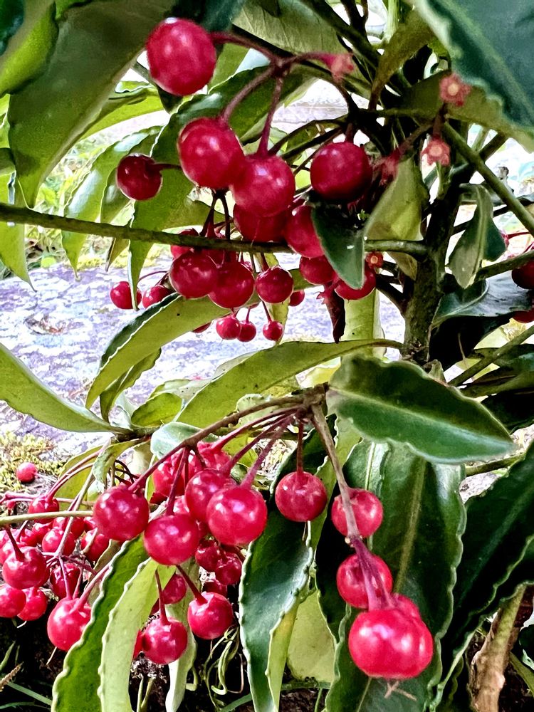 万両の赤い実がかわいらしくて、おいしそうにも見えます😆
