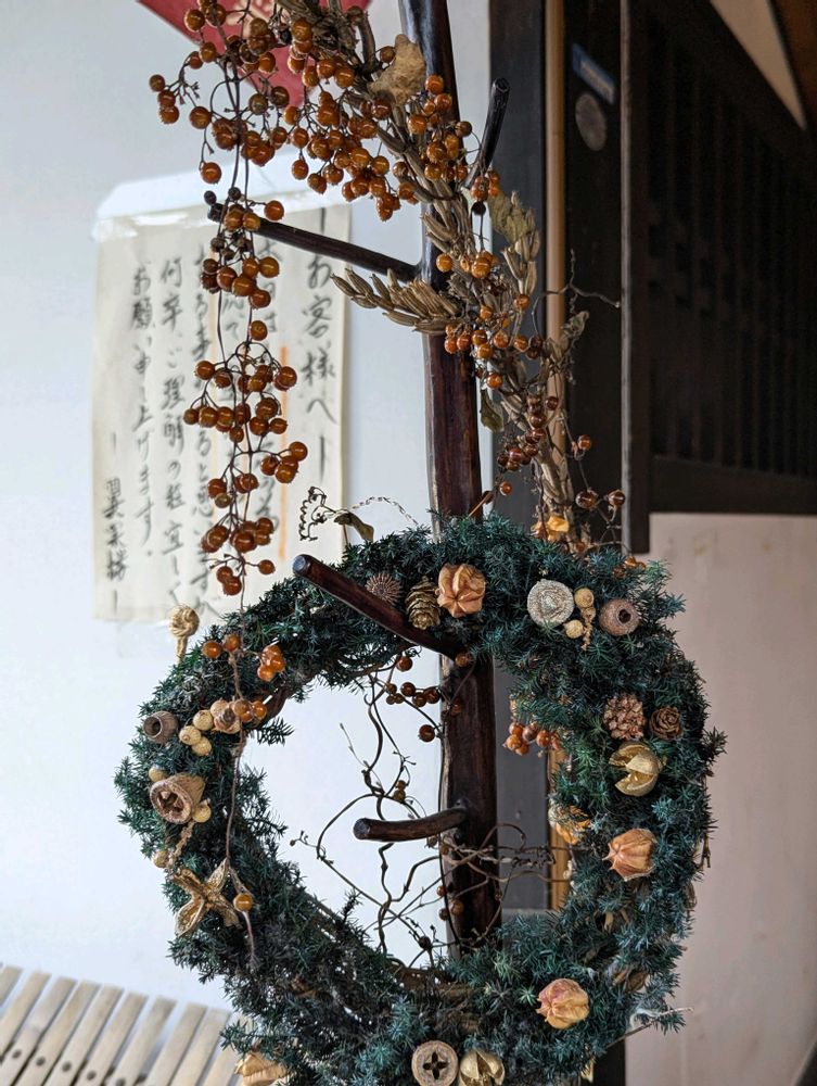 古民家風の店内にはクリスマスの飾り
