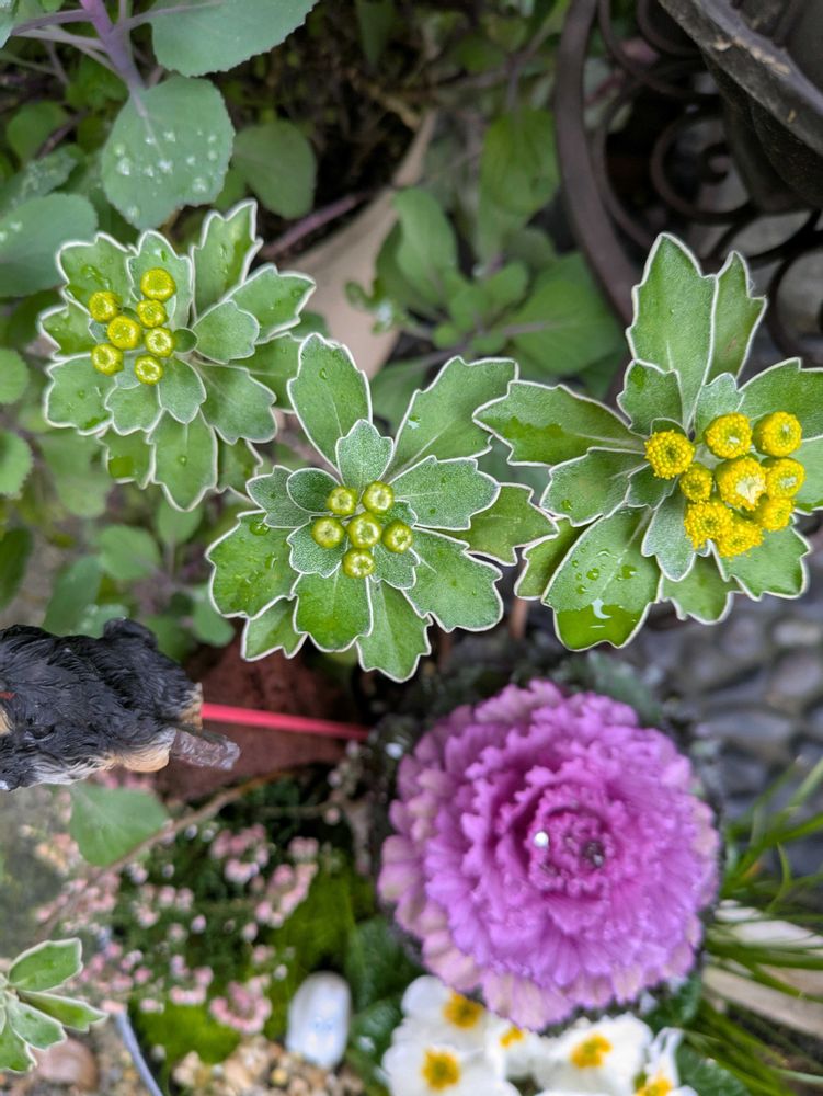 確かに随分前に婦人会主催の寄せ植え作った時、小さなイソギク、入っていたわ、葉っぱが、綺麗を演出してくれてたの覚えているけど、お花は・・・・🤔なのよね😅💦