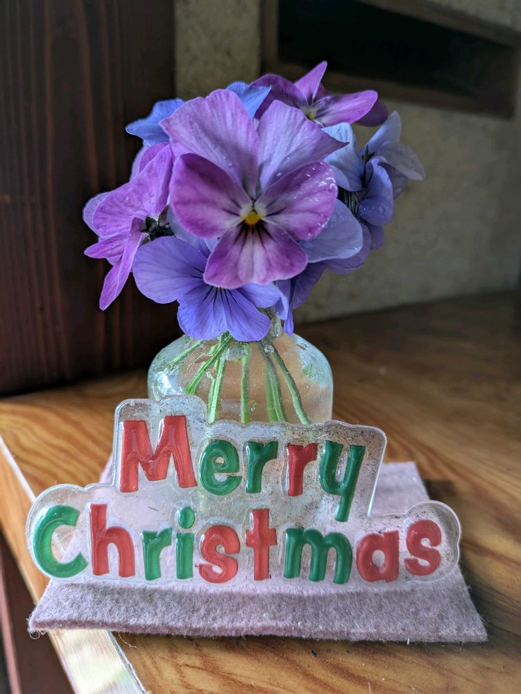 最後はビオラのお花を摘んで花瓶に入れ飾りました😄