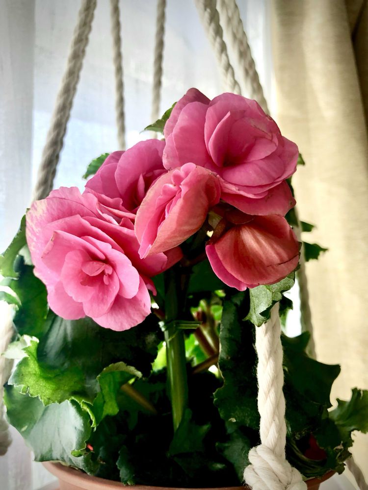 舞台上にクリスマスの時期に咲いている鉢植えを飾って帰りに一人1鉢頂き早速窓辺にベゴニアを飾りました。🌸