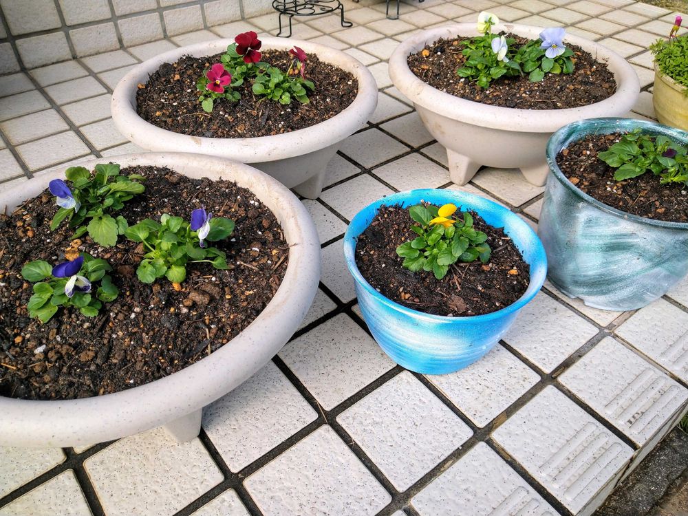 9月上旬からの種蒔きビオラの鉢上げをしました😀