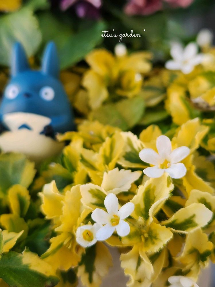 トトロが小さいお花を眺めています( Ꙭ)ꙭ҉ ⋆⸜ ⊹кαωαɪɪ ·͜·ೢ ⸝⋆