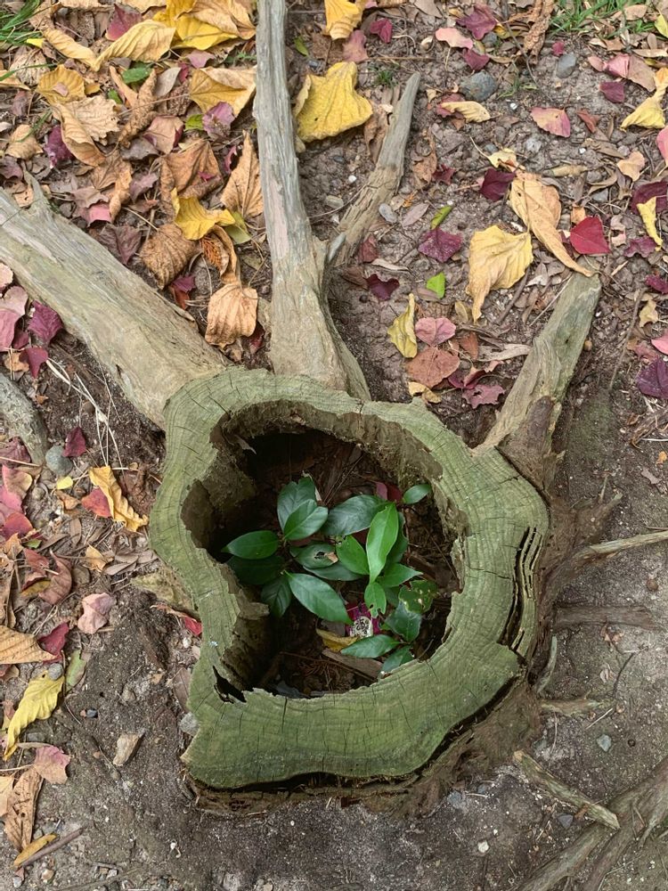 くり抜かれたような切株、覗いたらおっ👀って🌱