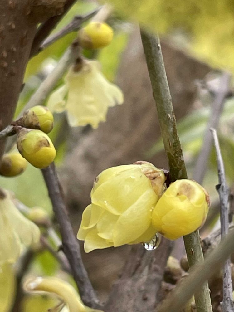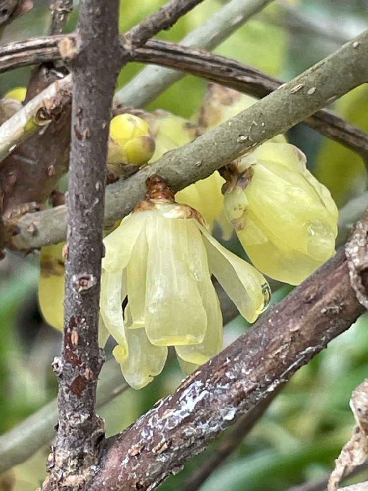 蝋梅は早春の梅が咲く頃とばかり思ってた。花がツルツルだろうみたいできれいだね。長く咲くのが良いね😊