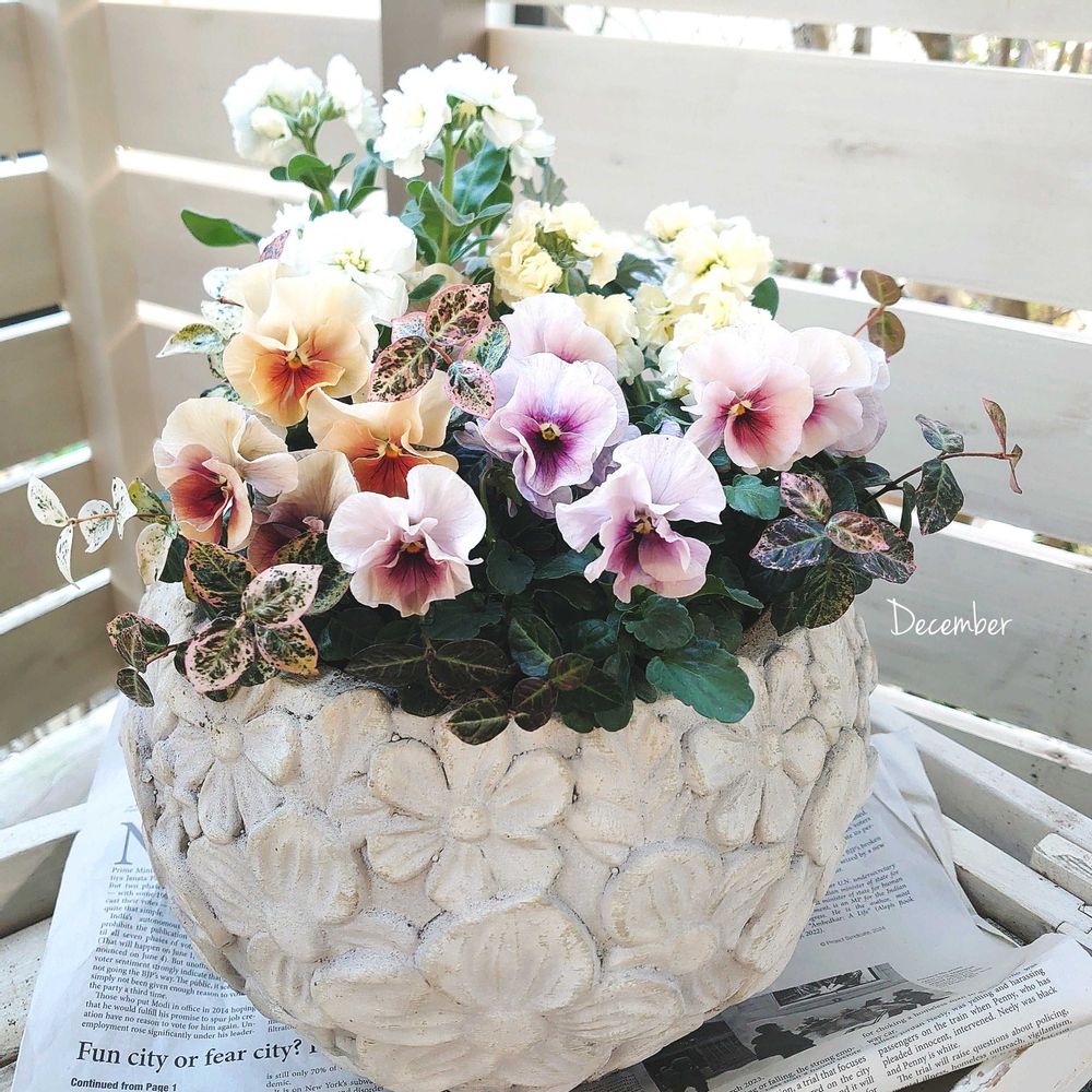 ビオラさんがふわふわで色も柔らかでハツユキカズラさんを合わせる感じもとても良いですね🫰😊💕