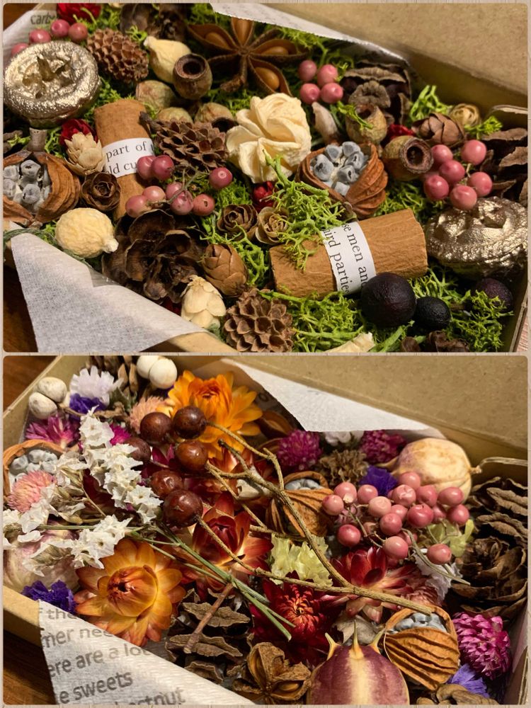 友達がこんなに可愛いお花と木の実の詰め合わせセットを選んでくれて、とっても幸せです💖