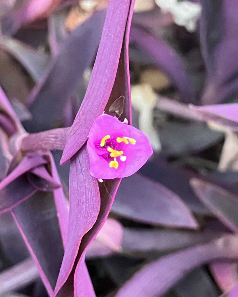 こちらも花弁3枚真ん中に黄色い蕊ですが葉が紫🟣色で花はピンク🩷