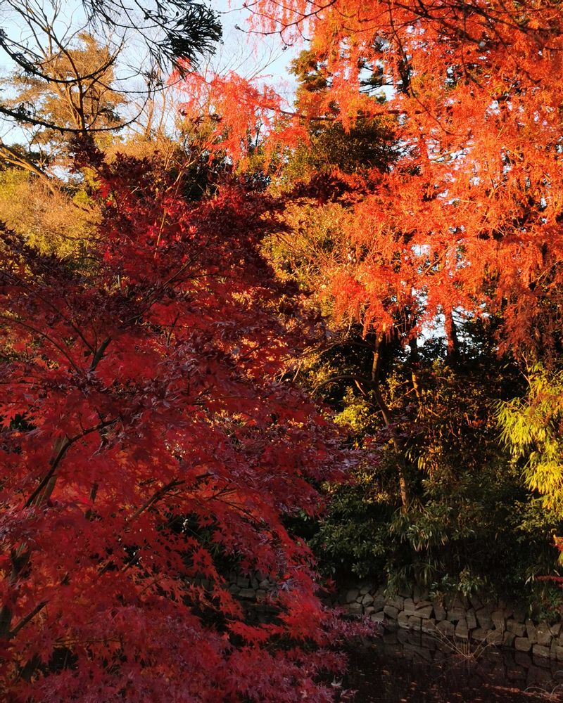 モミジ🍁やラクウショウの紅葉🍂が夕日に輝いていました。🌅