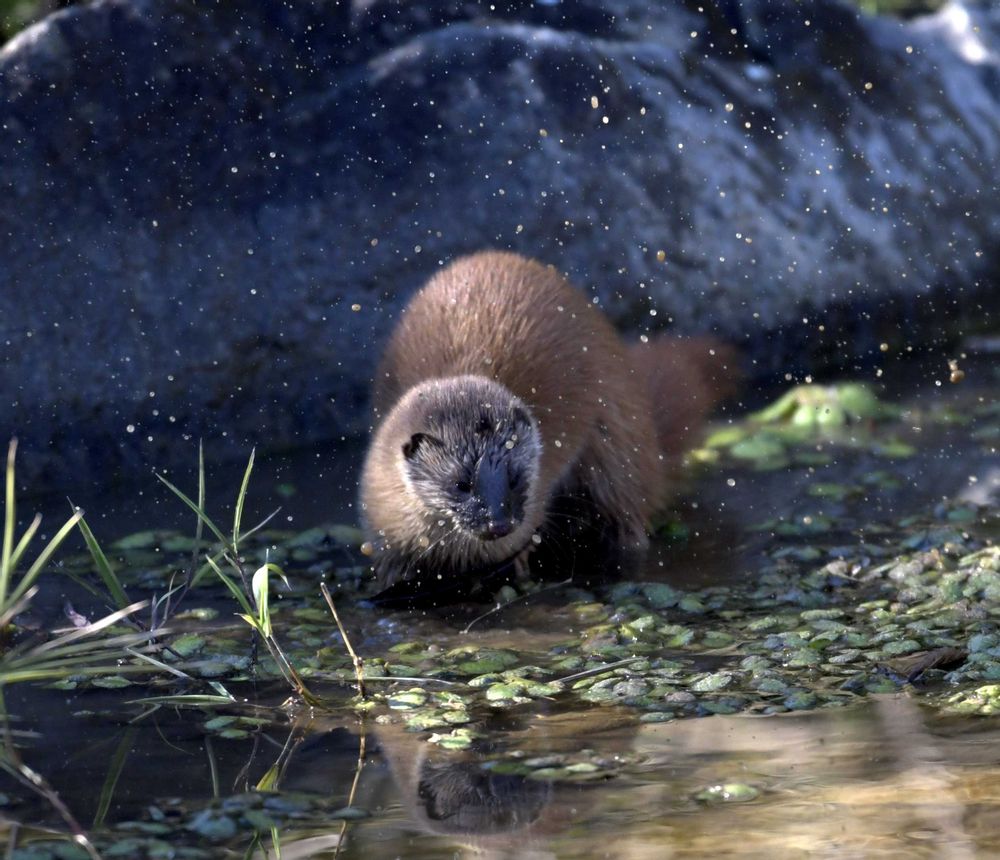 水中に顔を突っ込むので顔を上げた時はブルブルして水滴が飛び散ります