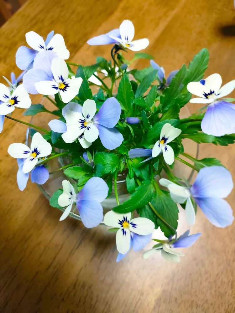 切り戻しました。薄い青い色の花が、可愛いいです。ウン♪(,,^ᴗ^,,)🐱🐾