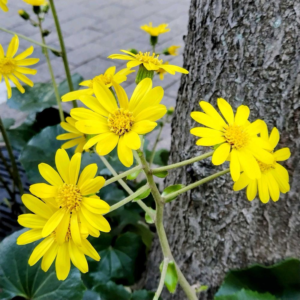 そのビル脇の歩道の街路樹の根元にツワブキが植えられていますが見ごろを迎えています✨
