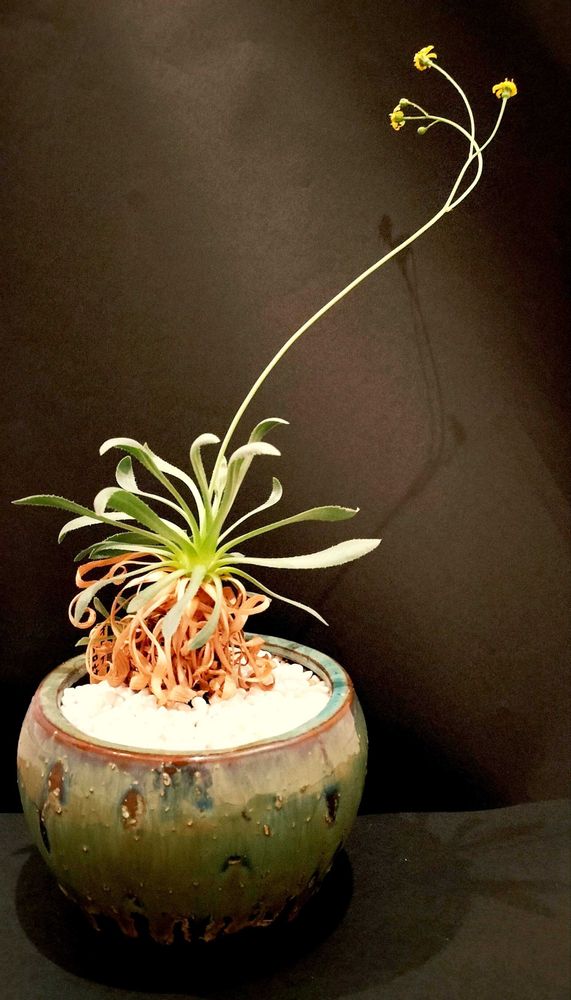 信楽焼の盆栽と化したオトンナさん。3年目でようやく初開花🌻しました☆😃✨