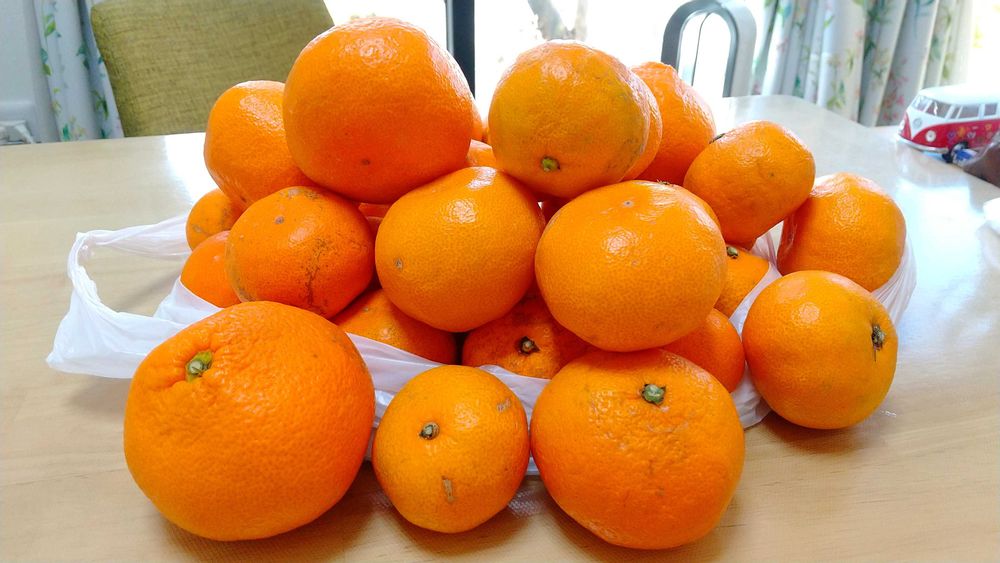頂き物の三ケ日ミカン。新城市は静岡県と接していて浜松市三ケ日町は生活圏にあり親戚や知人などがいます。そんな訳でこの時期は三ケ日名物のミカンが度々頂けます。早生、青島など時期によりいろいろと。🍊