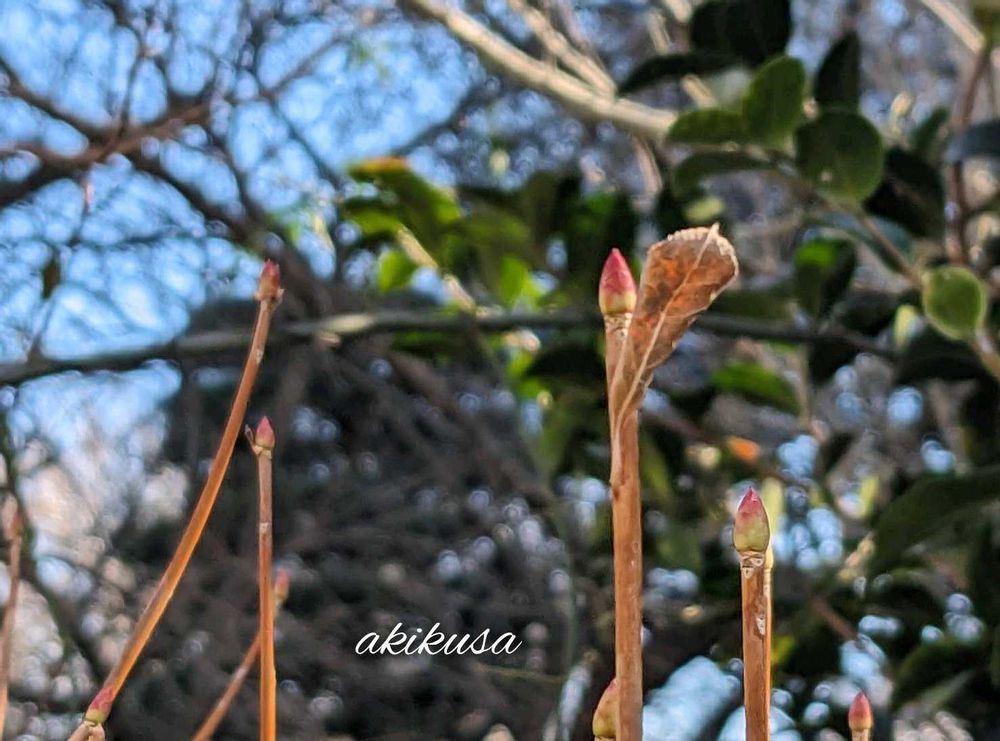 この赤い冬芽トウガは葉芽ヨウガと花芽カガが内包されている混芽コンガだそうです