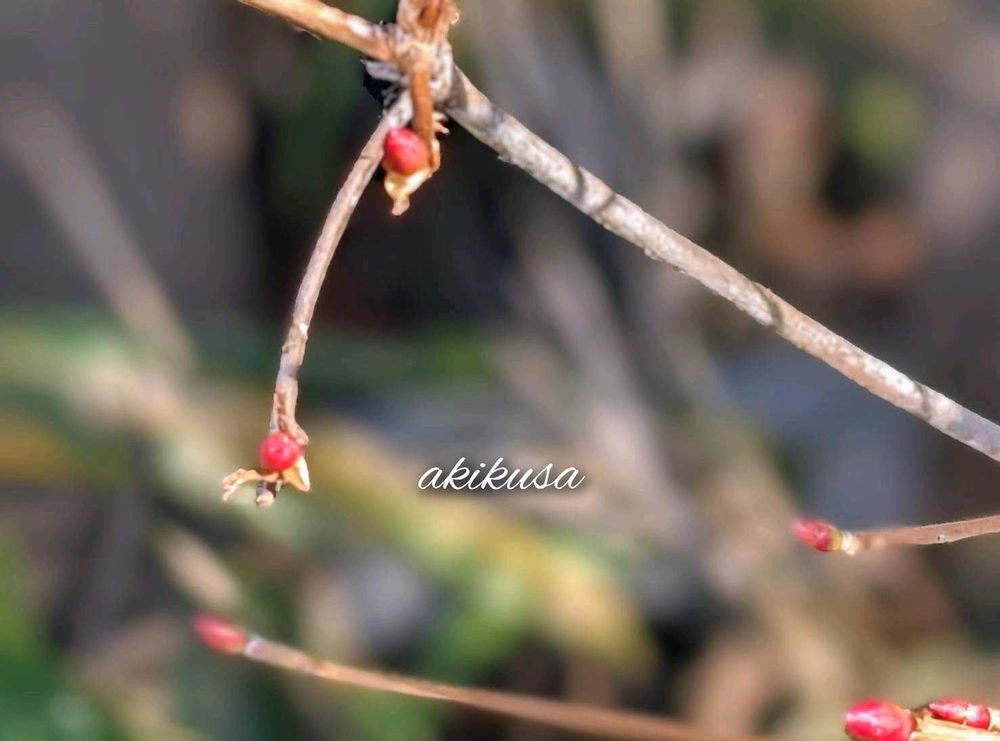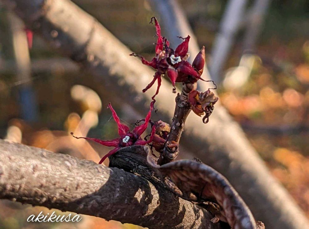 秋冬に向かって咲いたマルバノキの赤いお星様は両性花…