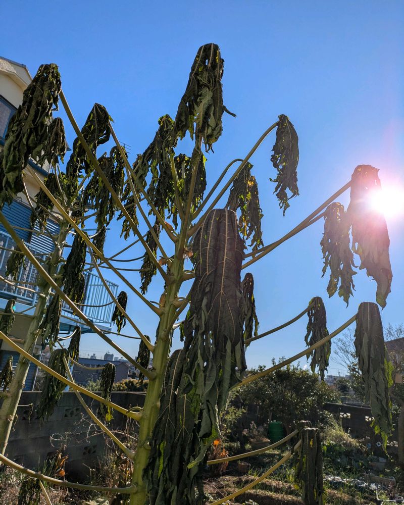 パパイヤは!いよいよ終わりましたが、これをどう、片付けようかな。