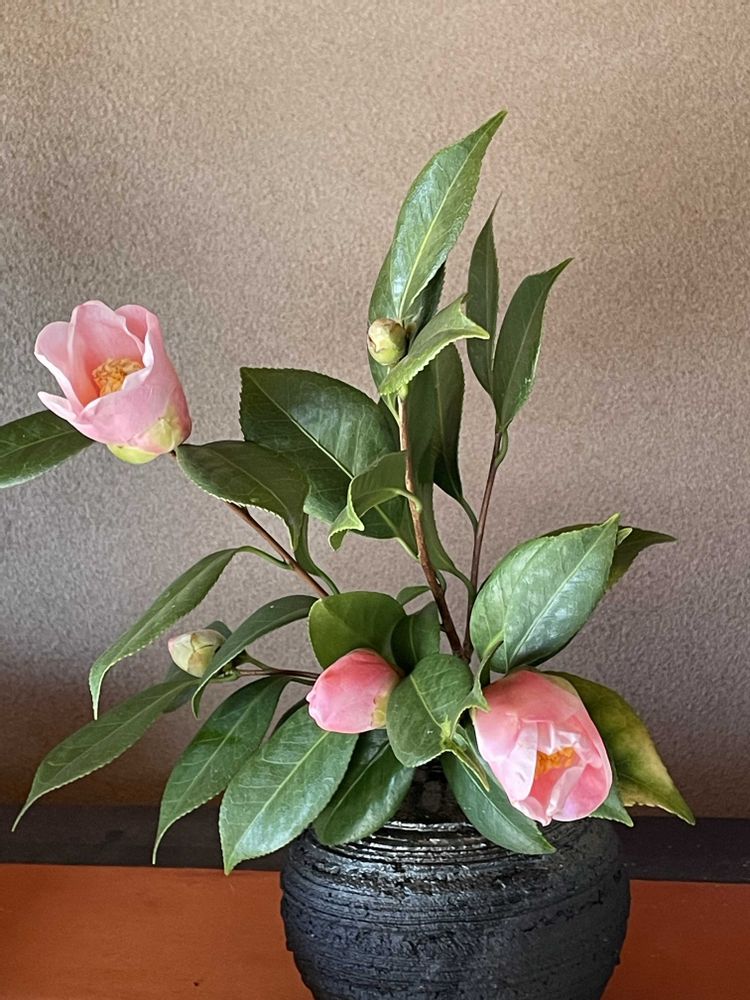 実家の薮椿🩷花瓶の中で可愛く開いて…ほっこりです☺️