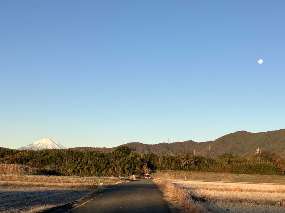 白い富士山🗻🤍と欠け始めた月🌖