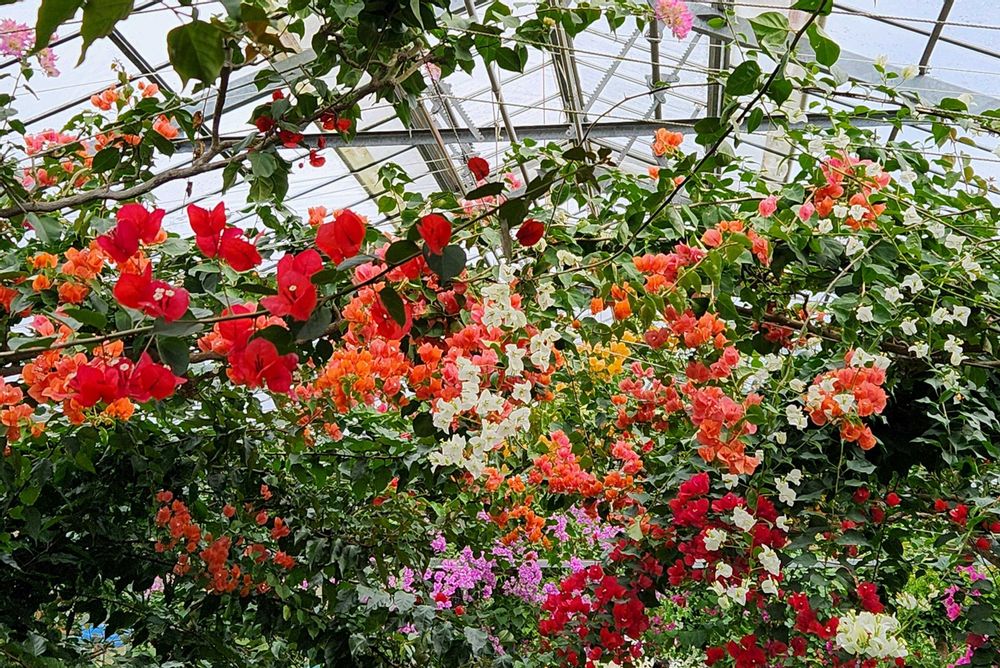 ブーゲンビリアの丘の温室内は色とりどりのお花が咲き誇り
