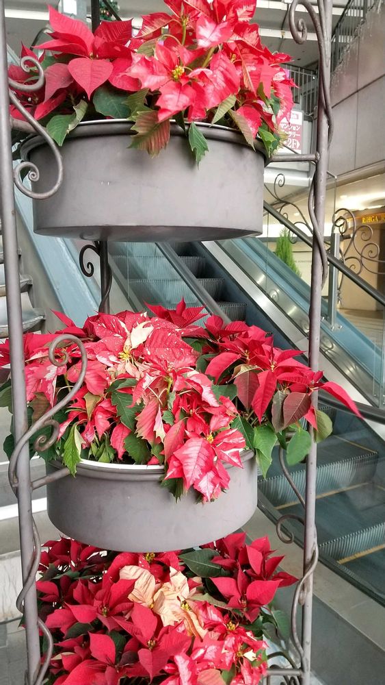 真っ赤なポインセチアがクリスマスを思わせます🎄