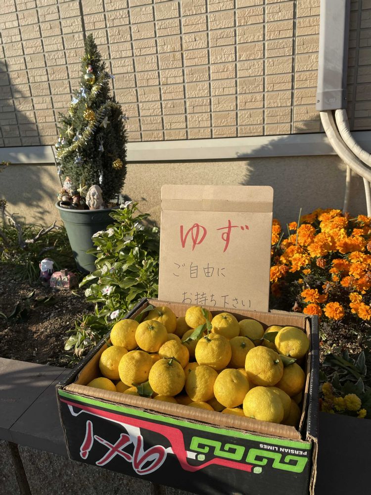 葉っぱも付いて綺麗な柚子🟡ご自由にお持ちくださいなんて、そのお気持ちが嬉しいですね😊暖かい気持ちになれますね〜🥰💕