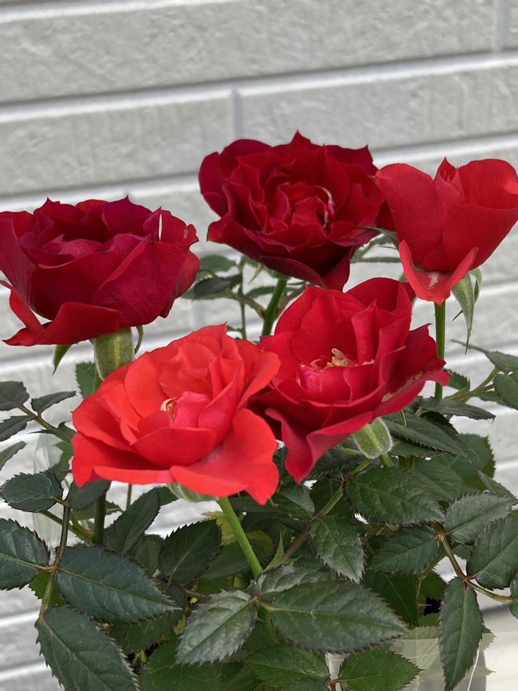 レッドの八重咲きミニバラ🌹一目惚れして今日お持ち帰りした子。