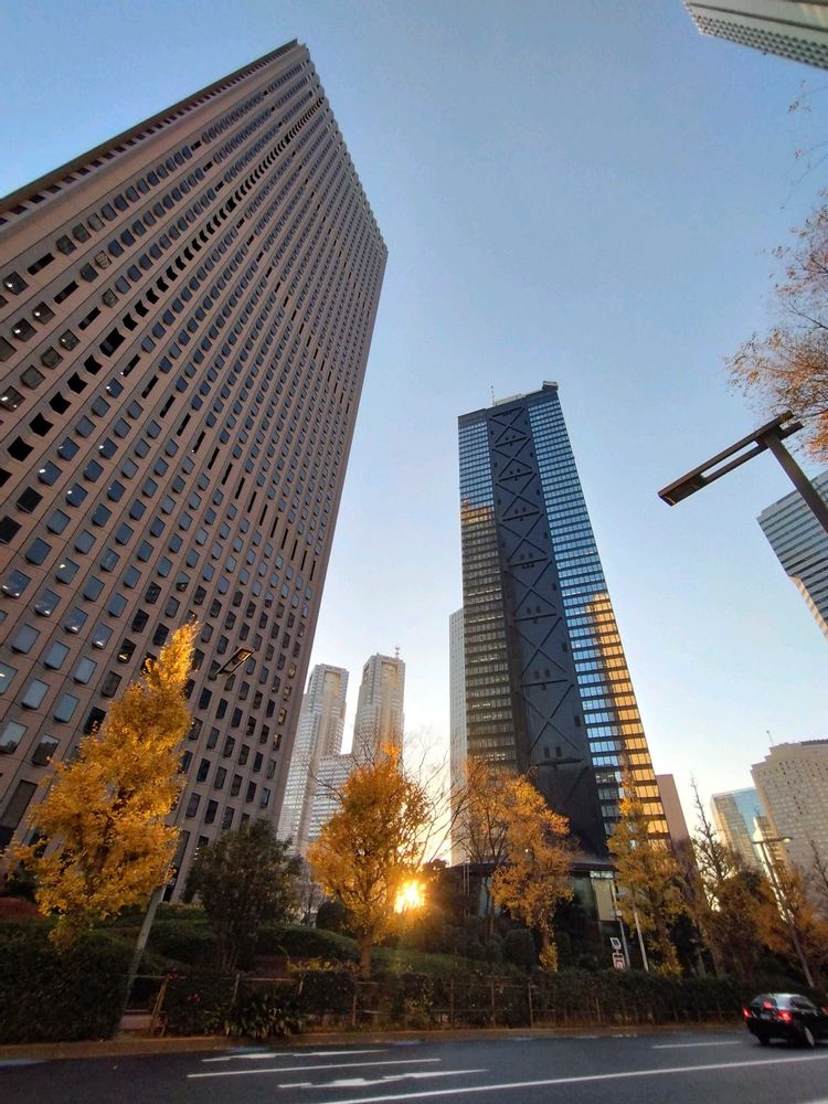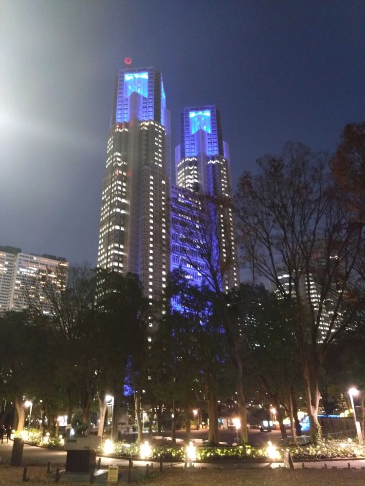 新宿中央公園から見上げる東京都庁舎のブルーもキレイ🌃