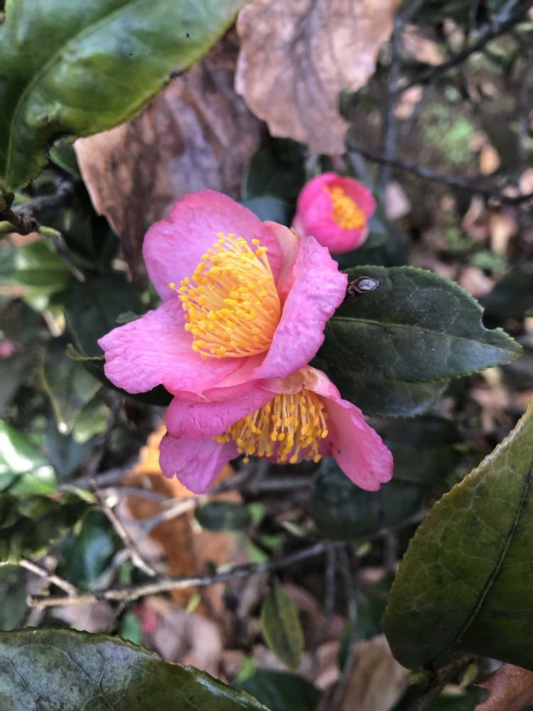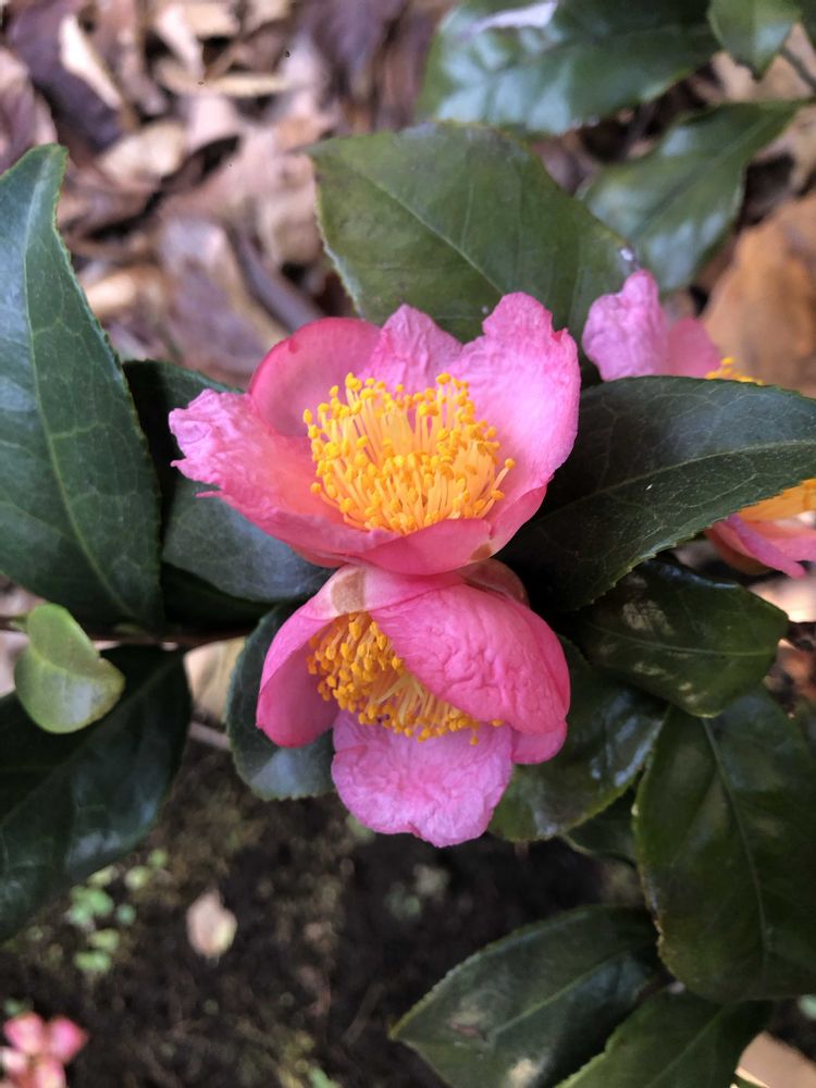 小さくて可愛いピンクのツバキ🩷先月見つけてからずっと咲いています☺️🌸