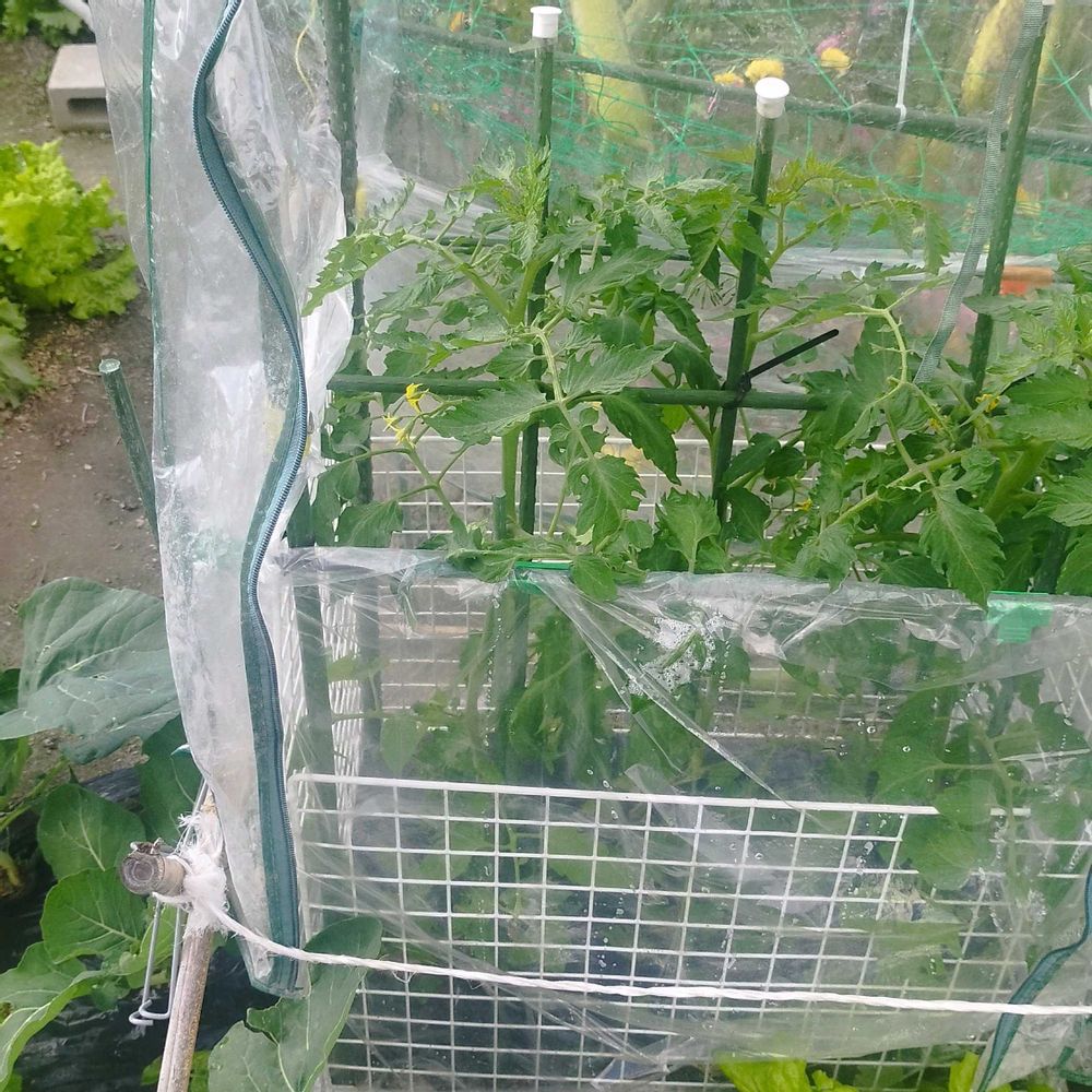 正規の小さな温室の方に植えたミニトマト🍅は花が咲き、摘蕾してトマトトーン着けたら小さな実をつけてくれました😁