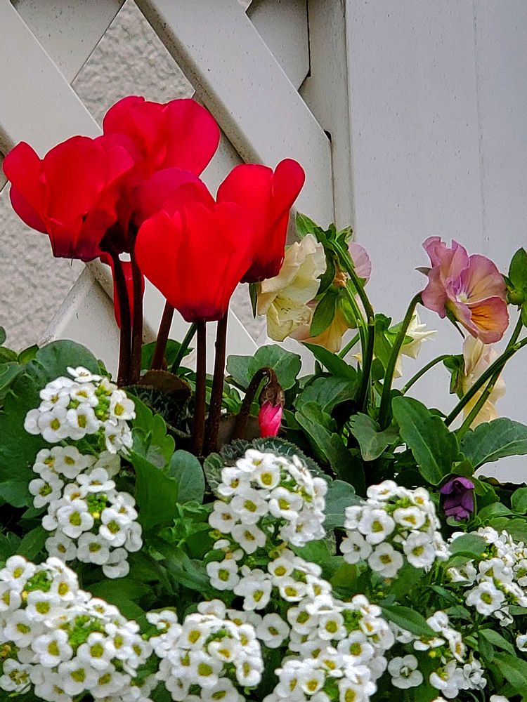 1枚目シクラメン・パンジー・アリッサム、2枚目ガーベラ、3枚目ガザニア、4枚目ネメシア、5枚目ユリオプスデージーかな🍀。