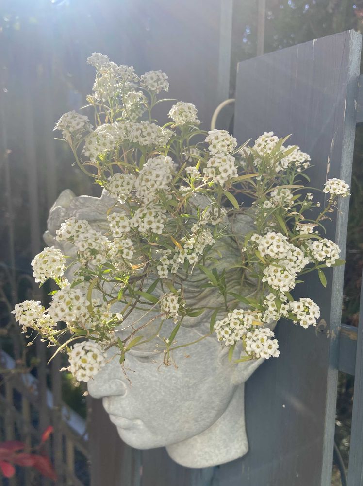 マダム、零れ種のアリッサム帽子をかぶって、久々の登場です💙😂