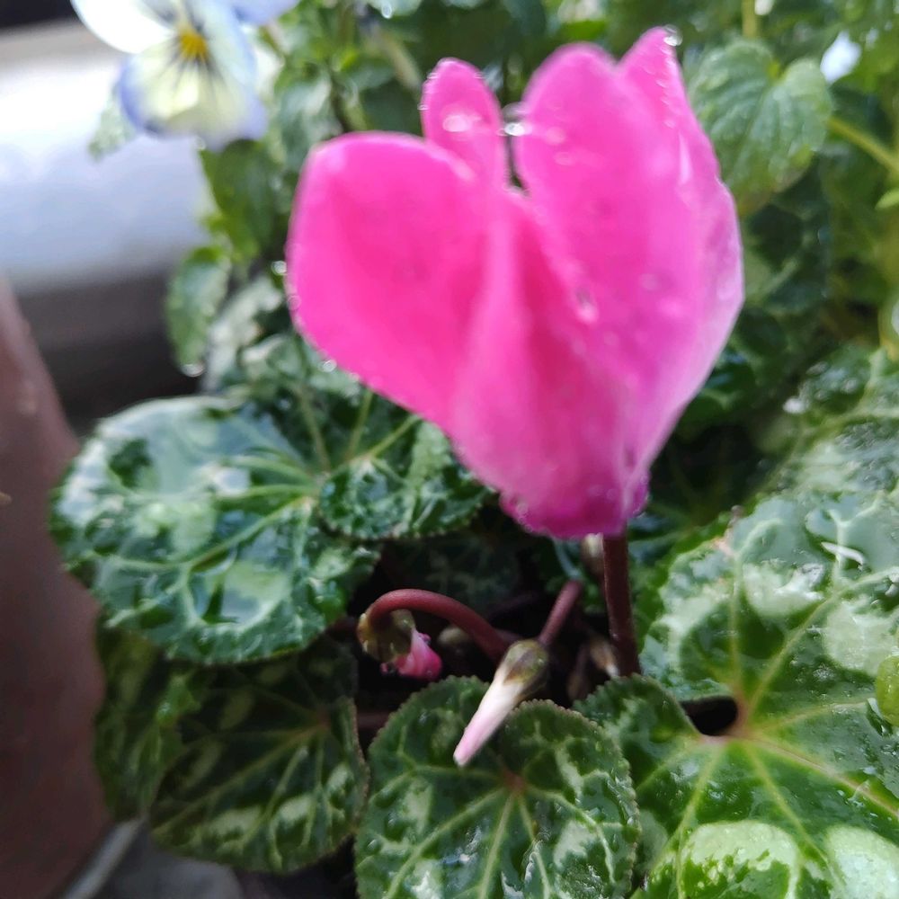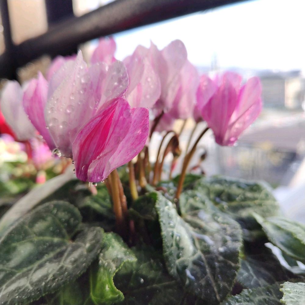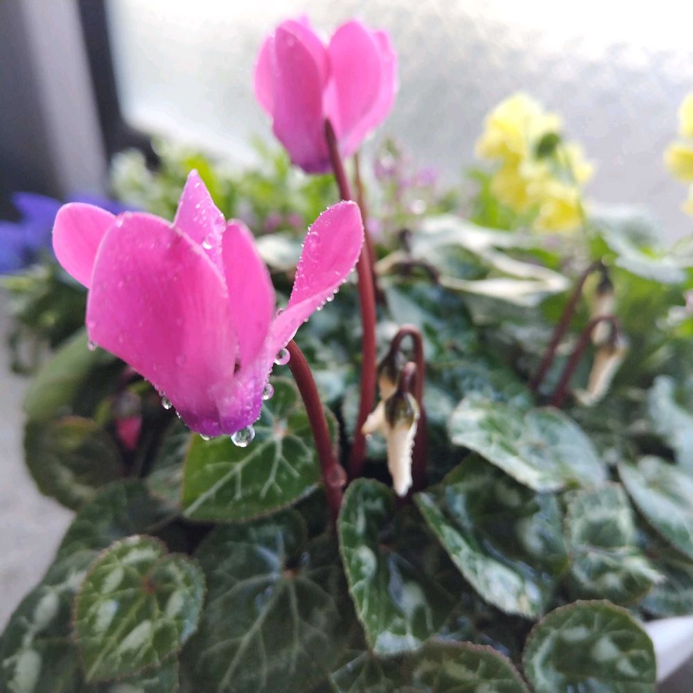 窓辺のミニシクラメンとシクラメン…クレヨンさん🌸💓💮🌱🌿🙆🏻♀️😉で…3️⃣4️⃣5️⃣